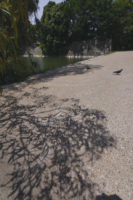 8時15分。/ 股もあらわな / ナップザック。/すっかり透けてしまった / 夏である。